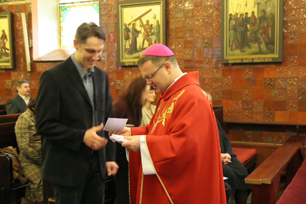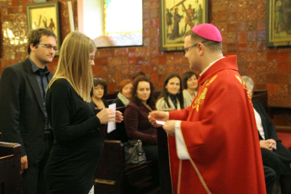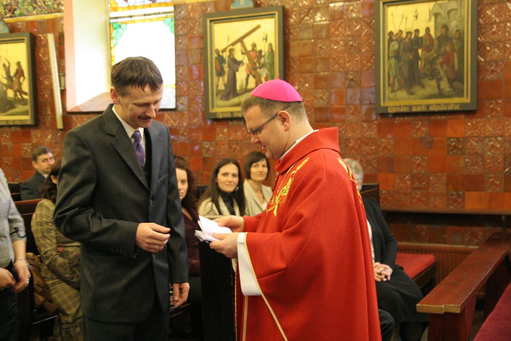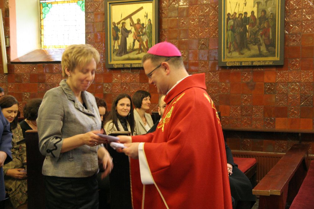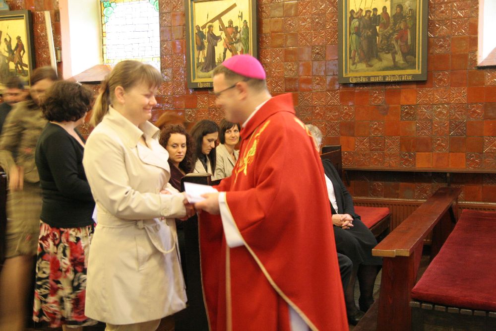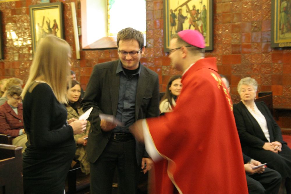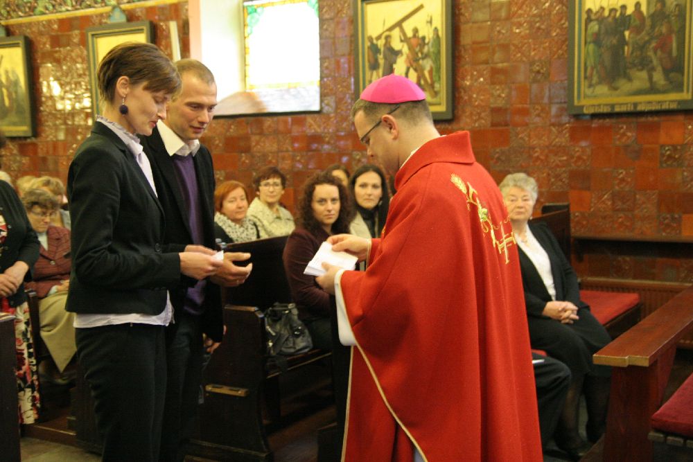 Po zakończonej Mszy św. Ksiądz Biskup wręczył Misje Kanoniczne 52 osobom, które w roku akademickim 2011/2012 ukończyły szkolenie doradców życia rodzinnego w dekanatach starogardzkim i kartuskim.